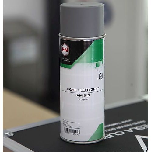 Dankzij de handige spuitbus is de grondvuller AM 810 Light Filler Grey van R-M® altijd klaar voor gebruik. Spuitapparatuur is niet nodig en er hoeft ook niets te worden gemengd. De lichtgrijze kleur past bij een groot aantal basislakkleuren. De uitdamptijd van de grondvuller bedraagt bij een omgevingstemperatuur van 20 °C slechts 20 seconden en de droogtijd met een UV-A-lamp bedraagt maar vijf minuten. De grondvuller staat garant voor een soepele workflow, waardoor tijd wordt bespaard en het herstelproces snel en efficiënt verloopt. Carrosseriebedrijven die veel kleine en middelgrote schades herstellen, kunnen zo doeltreffend hun productiviteit verhogen. Bovendien is het product uitermate geschikt voor applicatie op kunststof carrosseriedelen.