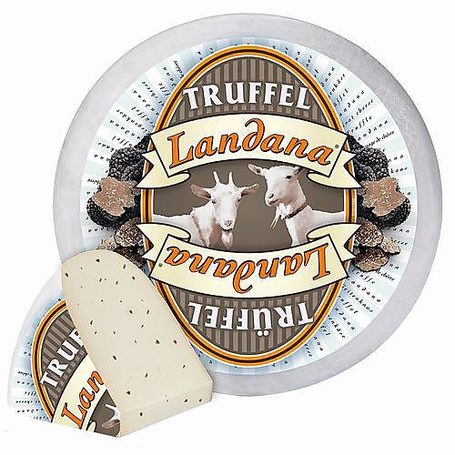 Landana introduceert een nieuwe kaasspecialiteit voor liefhebbers van geitenkaas. De Landana Geitenkaas TRUFFEL is een licht gerijpte kaas gemaakt van 100% pure Hollandse geitenmelk. Tijdens het kaasmaken worden fijne stukjes zwarte truffel aan de wrongel toegevoegd. Na een rijping van minstens zes weken heeft de kaas een romige en rijke smaak, waarbij de truffelsmaak voor een unieke belevenis zorgt.