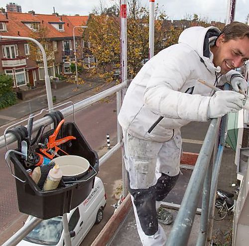De Go!Paint Tool Tray is een handige bak voor verfblikken en gereedschap die eenvoudig te hangen is op een steiger, ladder of hoogwerker. Je hebt daardoor beide handen vrij voor de klus en kan veiliger, sneller en ergonomisch werken. Doordat alles veilig hangt binnen handbereik hoef je minder te bukken en is er minder kans dat iets per ongeluk van de steiger geschopt wordt. Het slim gevormde hengsel kan naar achteren gedraaid worden voor stabilisatie tegen schuine vlakken zoals bij een ladder. Minder tillen, minder bukken en beide handen vrij voor elke klus op hoogte. www.go-paint.com