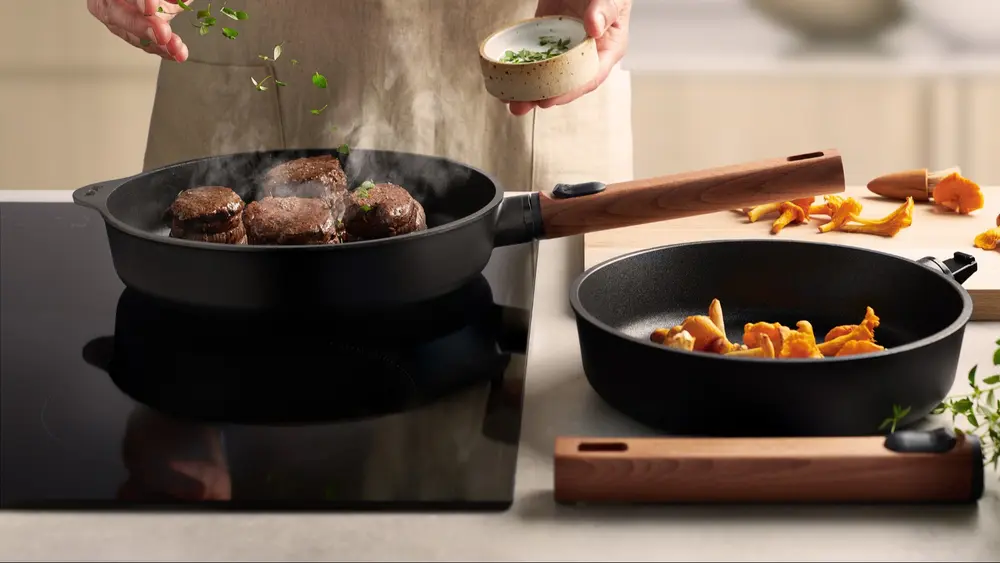 De fabrikanten van kookpotten hebben de laatste jaren niet stilgezeten. Ze ontwikkelden steeds meer potten en pannen zonder PFAS, voor downdraftvuren, in allerlei soorten materiaal, met een tot zeven lagen.